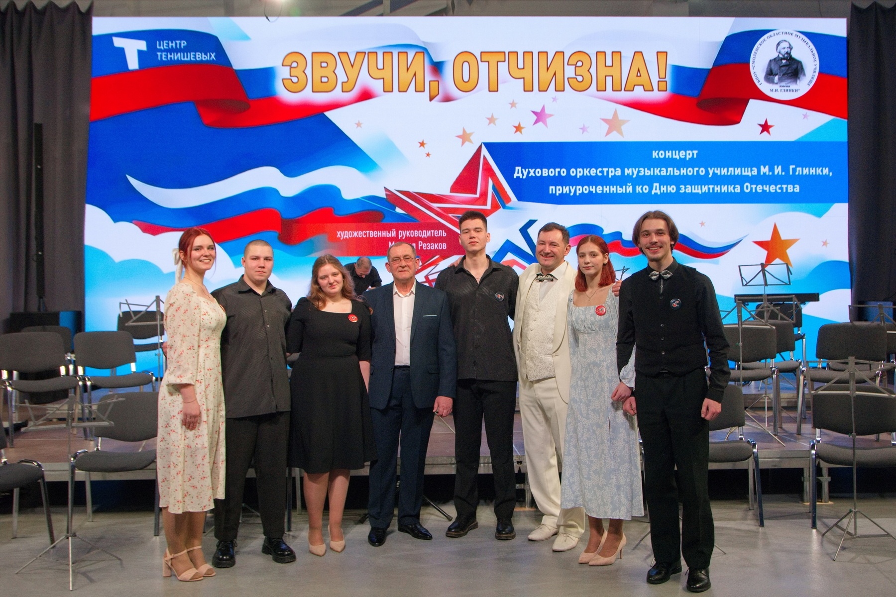 19 февраля в культурно-выставочном центре имени Тенишевых состоялся праздничный концерт «Звучи, Отчизна!», приуроченный ко Дню защитника Отечества. Этот вечер стал настоящим музыкальным признанием в любви к Родине — мощным и вдохновляющим. Зал наполнился живым дыханием духового оркестра Смоленского областного музыкального училища имени М. И. Глинки под руководством Михаила Резакова. В программе прозвучали произведения отечественной и зарубежной классики, а также яркие композиции для солистов.